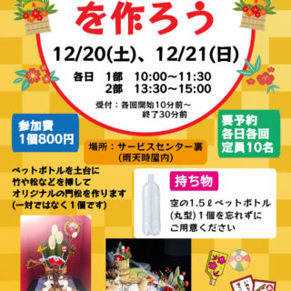 2. 【亀戸中央公園】12/20,21 「ペットボトルでミニ門松を作ろう」を実施いたします!