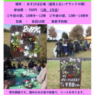 3. 【宇喜田公園】12/7(日)「Xmasリース作り教室」を開催いたします!