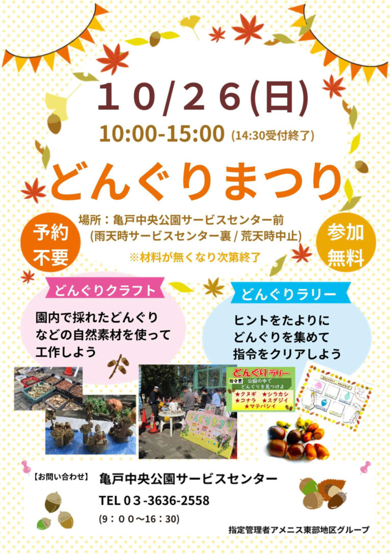 【亀戸中央公園】10/26(日)イベント「どんぐりまつり」を開催いたします!
