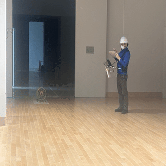 測定当日は、通信事業者の作業員が専用の測定機器を持って館内をくまなく歩き回り、電波の強度や安定性をチェックしました。館内の各所で行われた測定の中でも、特に注目されたのが、ミュージアムショップとして整備される予定の区域です。