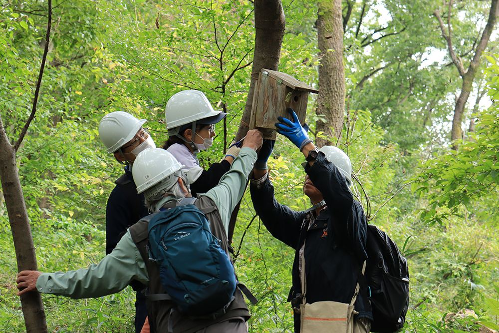 - パークレンジャーやボランティアさんと共に巣箱の中を観察します