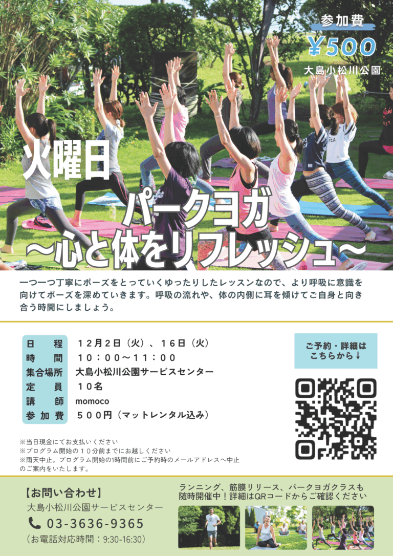 「パークヨガ~心と体をリフレッシュ~(大島小松川公園)」開催のお知らせ