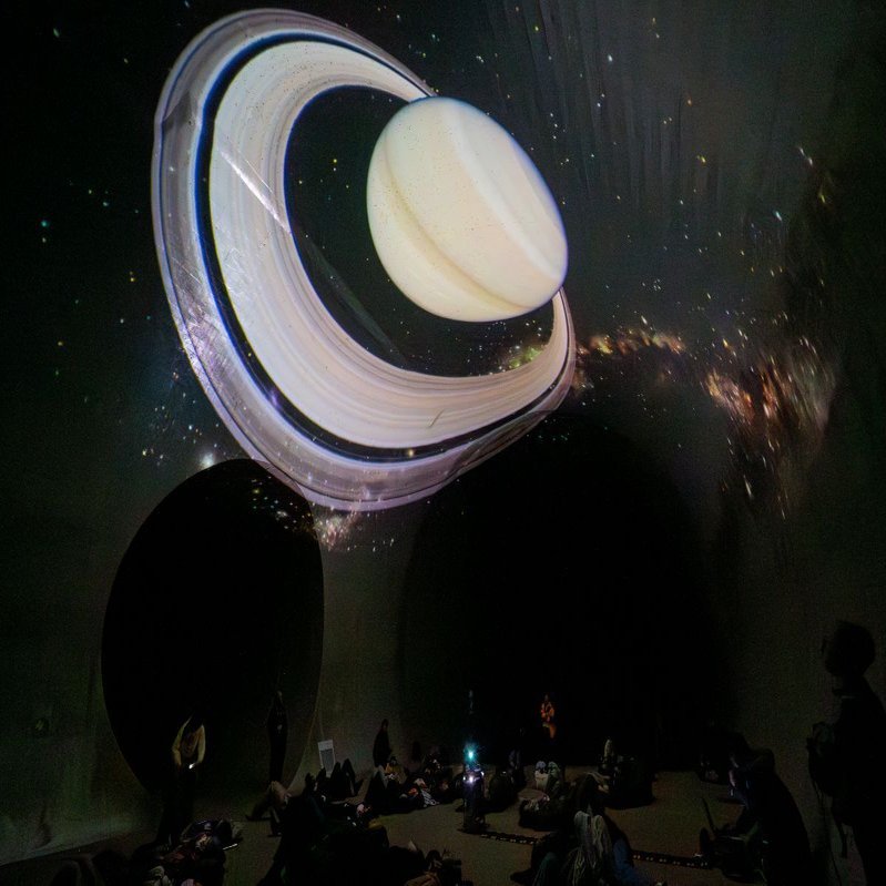 だんだんと暮れゆく空からきらきらと輝く星空へ。この季節に見られる冬の大三角形から星座を探したり、宇宙旅行で太陽系のほかの惑星を探検したりと、素晴らしい映像とナレーションで、会場は感動で満たされました。