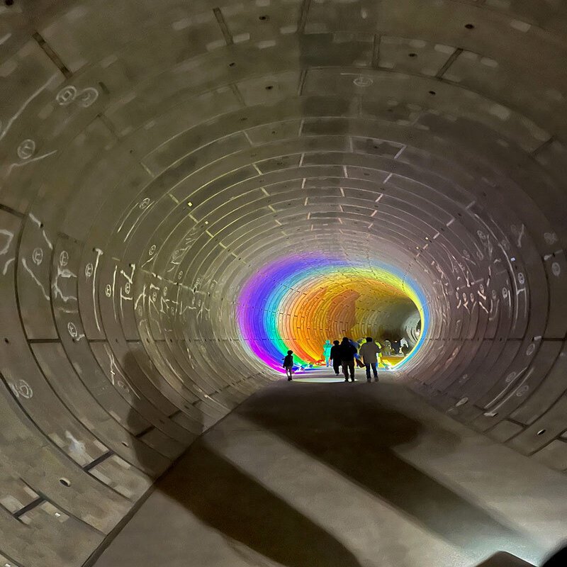 いよいよ巨大トンネルの中へ。暗闇空間で見えるもの