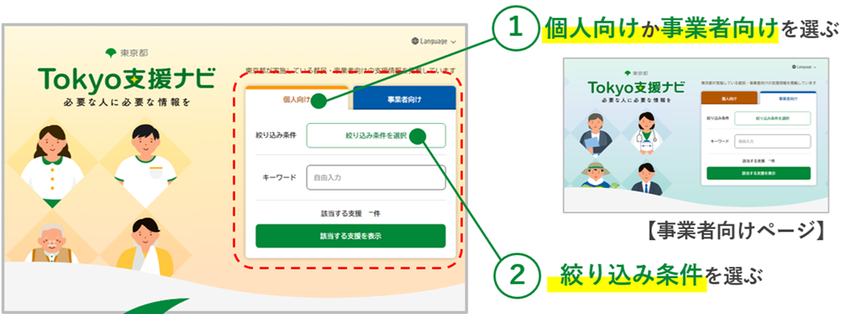 ⇓そんな時は「Tokyo支援ナビ」をご利用ください。