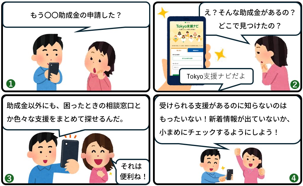 助成金や相談窓口、講座・セミナーなど、あなたにぴったりの都の支援策をTokyo支援ナビで見つけよう👍