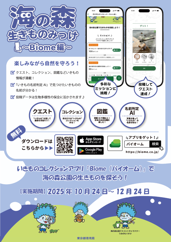 | 概要 | いきものコレクションアプリ「Biome(バイオーム)」で 海の森公園の生きものを探そう! |