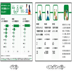 デザインシステムの採用とデザインの統一を行うことにより、直感的に理解ができるコンテンツとなっています。また、伝える内容に応じて、「定量データの変化を直感的に表示(グラフ型)」や「視覚に訴える要約表現(インフォグラフィック型)」等、見せ方も変えています。